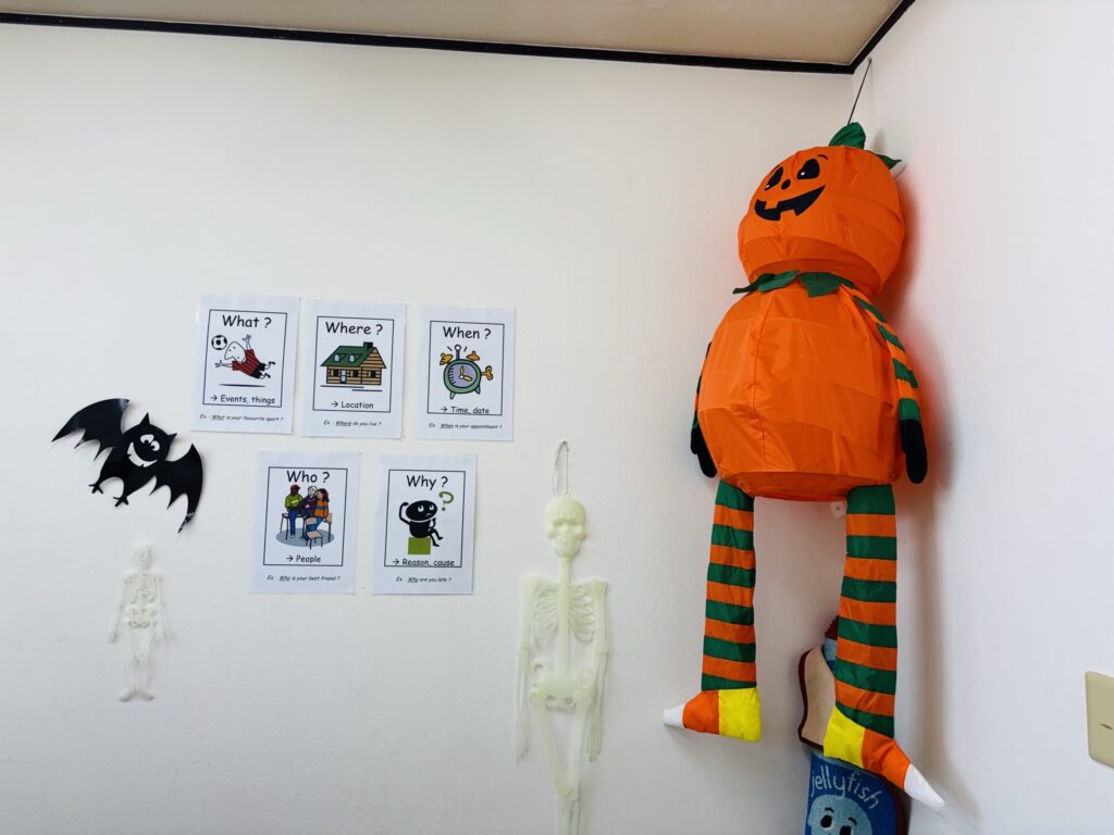 朝晩はすっかり冷え込むようになり、秋の気配が感じられます。10月になりハロウィーンの季節です。教室も衣替えをしました。今週25日には、ミヤマックスで「あゆみのハロウィーンパーティー」を開催します。ぜひご参加ください。今年は久々のおばけ屋敷風な催しもありますよ。
